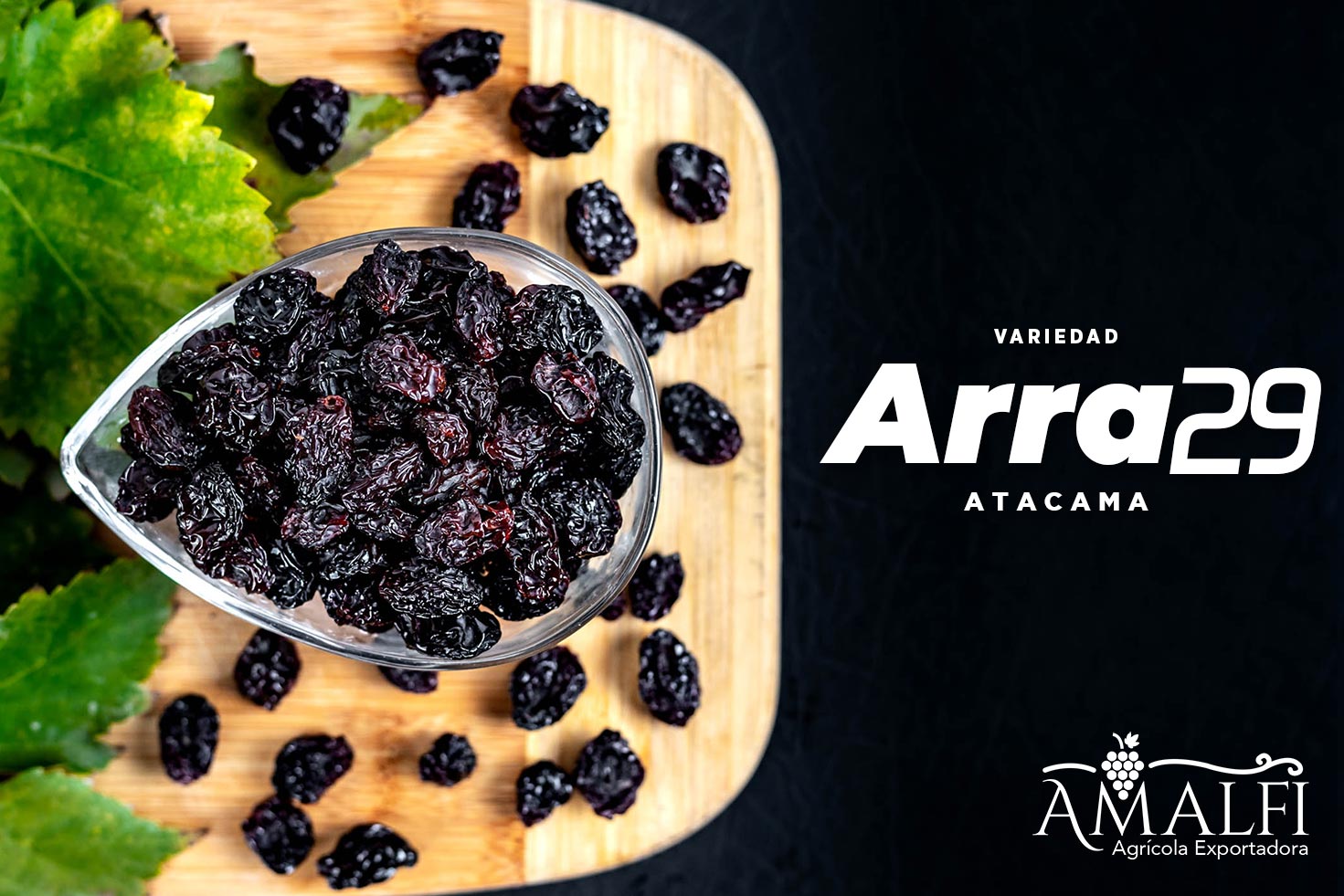 Producto sólido, sin semilla. fruto de uva deshidratado naturalmente al sol, color morado, forma ovalada, textura suave, olor agradable y dulzor característico.